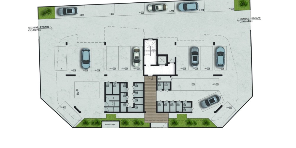 Здание состоит из 18 квартир с одной и двумя спальнями.