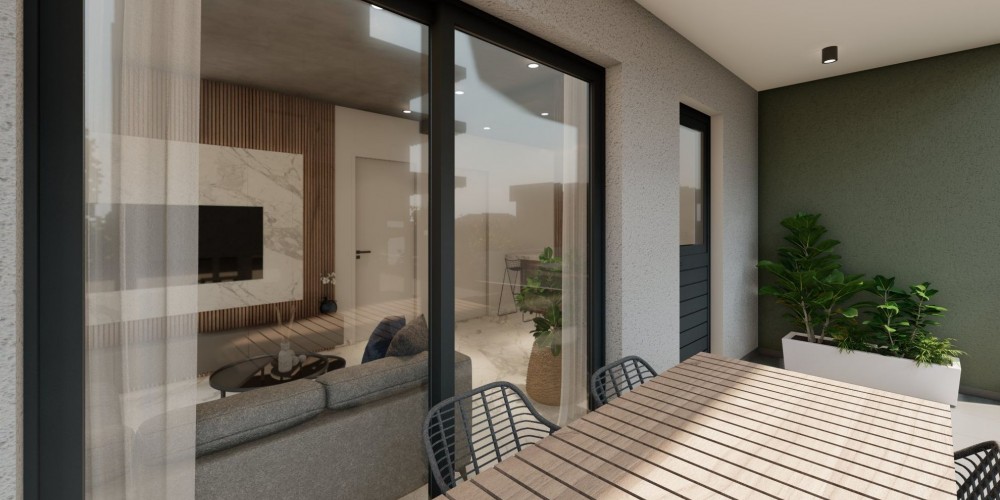 Это 4-х этажное жилое здание состоит из 5 квартир. Все квартиры очень просторные, с 1, 2 и 3 спальнями и большими террасами.