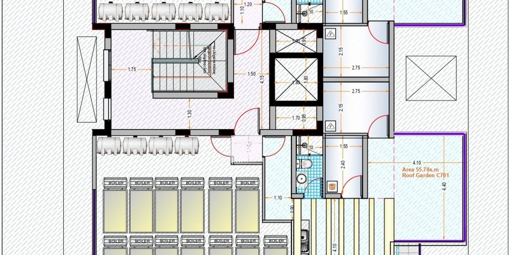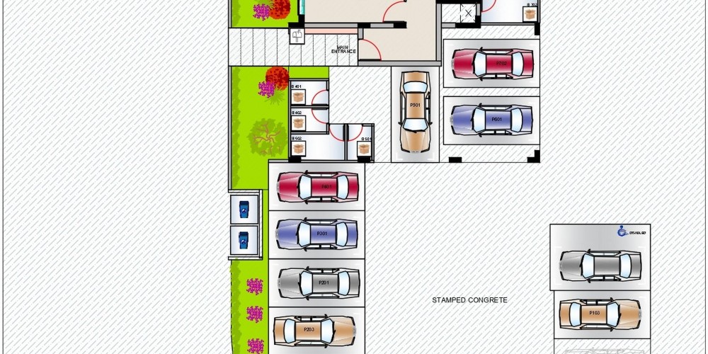 Проект состоит из современных квартир. Квартиры на верхнем этаже имеют отдельные частные сады на крыше с видом на окрестности. Каждая квартира имеет 1 парковочное место и кладовую на первом этаже.