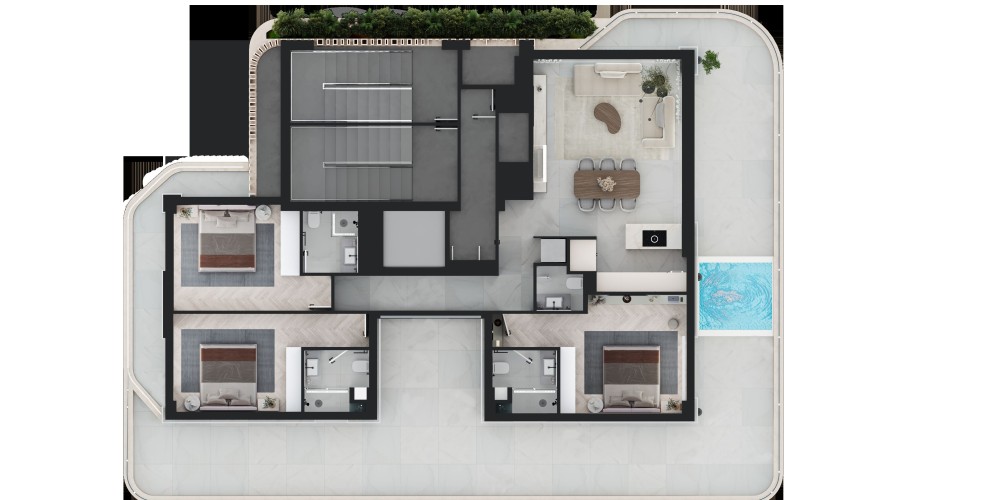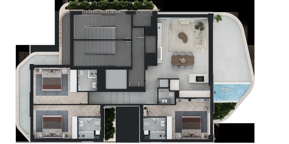 - Спальни с ванными комнатами и шкафами от пола до потолка