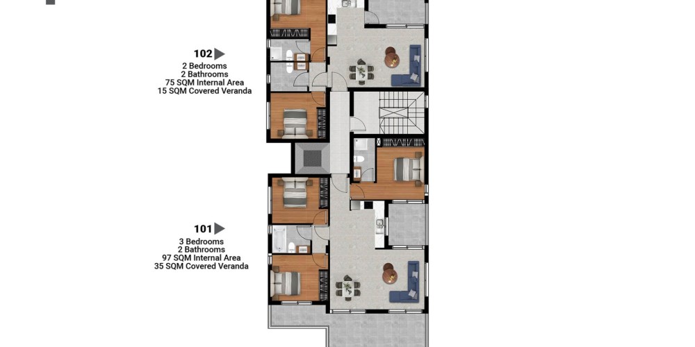 Проект будет иметь квартиры с 2 и 3 спальнями и пентхаусы с террасами на крыше.