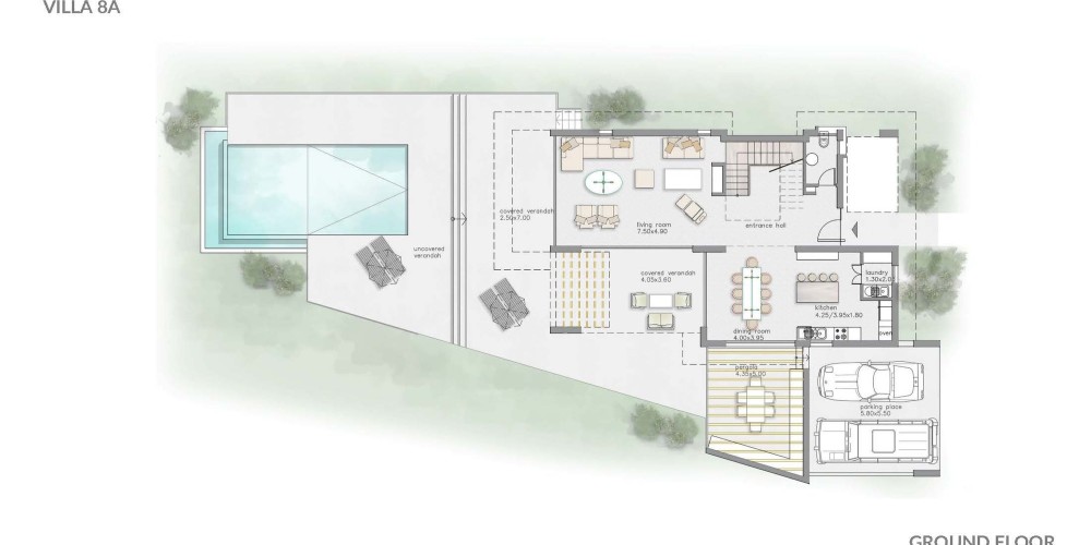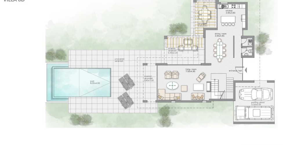 В то же время, огромное количество ресторанов и других элементов инфраструктуры находятся в нескольких минутах езды. В дизайне комплекса современная архитектура сочетается с традиционным кипрским стилем и духом острова. В оформлении преобладает местный камень, терракотовая черепица и стекло.