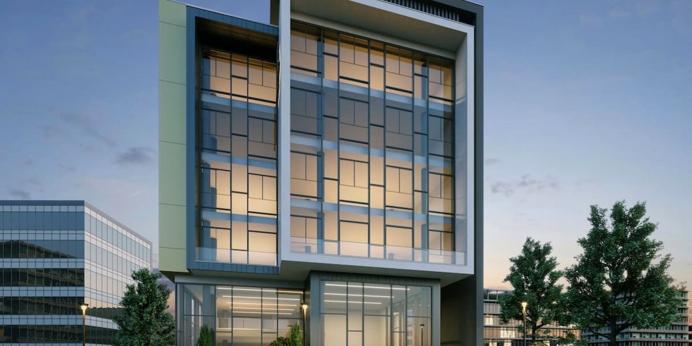 Коммерческое здание представляет собой четыре этажа с 5 современными офисами, каждый из которых занимает отдельный этаж и имеет помещения современной планировки.