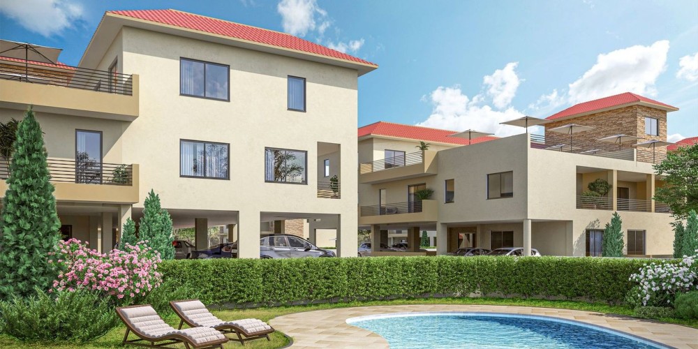 6 жилых здвний с 84 квартирами с одной, двумя и тремя спальнями и общими бассейнами