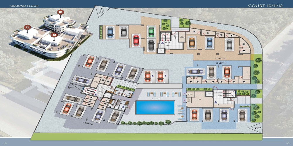 В комплексе есть общий бассейн, сауна и тренажерный зал. Каждой квартире будет выделена отдельная кладовая и крытое парковочное место.