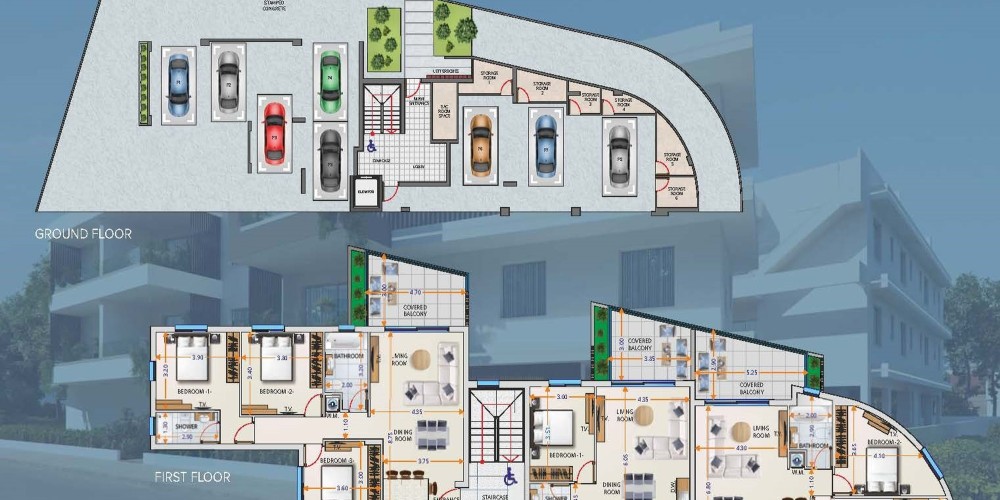 Новый комплекс расположен в районе Ливадии (Ларнака). Проект состоит из 3 блоков по 2 этажа и предлагает квартиры с 1, 2 и 3 спальнями, большими верандами. Квартиры на втором этаже имеют сад на крыше с прекрасным видом.