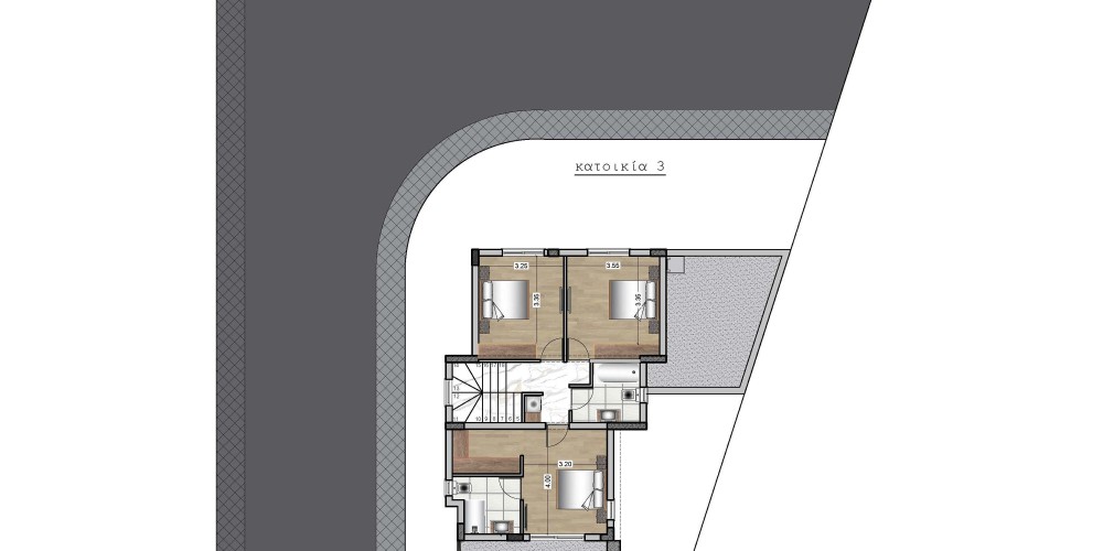 Комплекс в современном стиле состоит из 3 домов с тремя спальнями и просторными интерьерами.