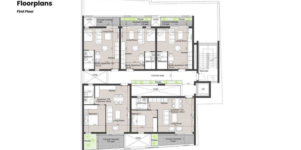 Проект из студий и стильных квартир с 1 спальней в 300 метрах от пляжей в Лимассоле.