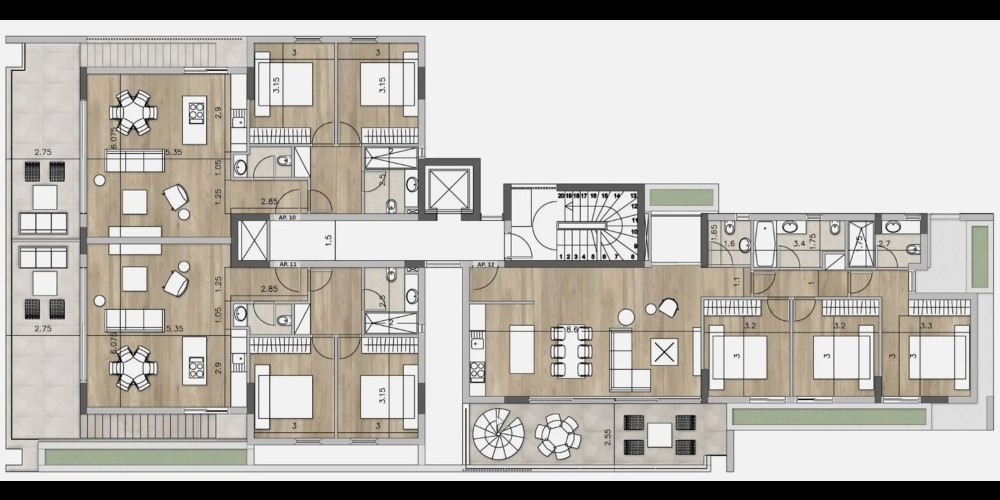 Проект состоит из 12 квартир с двумя и тремя спальнями и крытыми верандами, с которых открывается вид на окрестности.