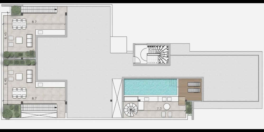 В составе открытой веранды сад на крыше 60 кв.м.