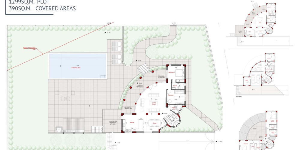 Из красивого ландшафтного частного зрелого сада и бассейна открывается беспрепятственный вид на море. Вилла также будет иметь цокольный этаж с тренажерным залом, зоной отдыха с сауной, дополнительной спальней, прачечной и крытым гаражом на две машины.