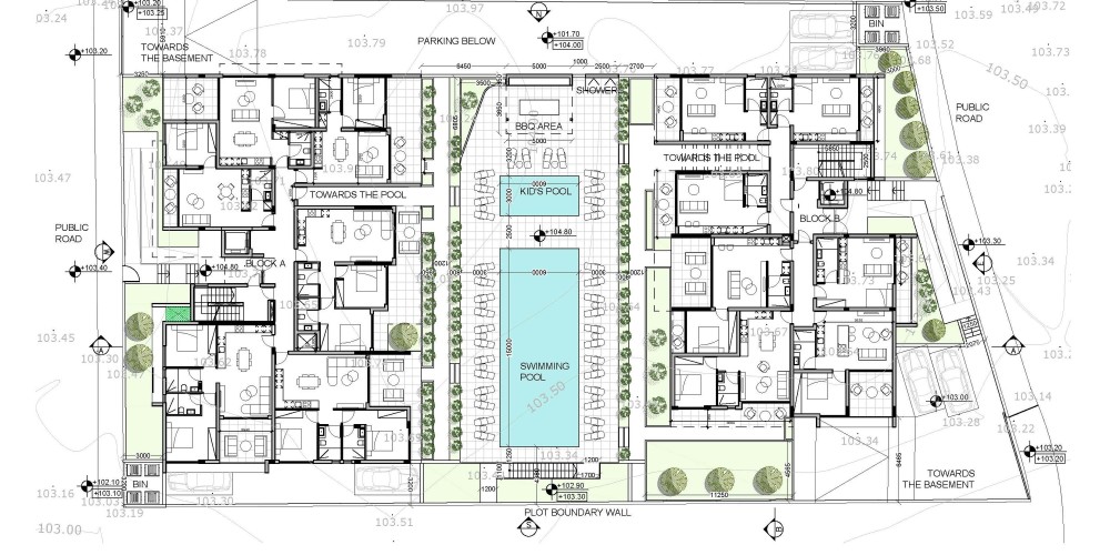 Комплекс будет иметь общий бассейн, детский бассейн, зону барбекю, тренажерный зал.