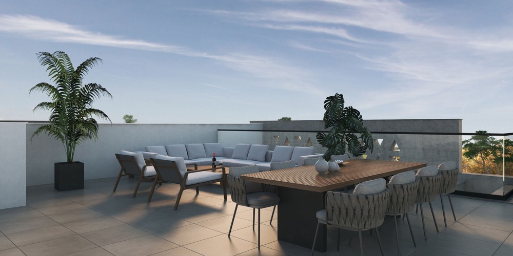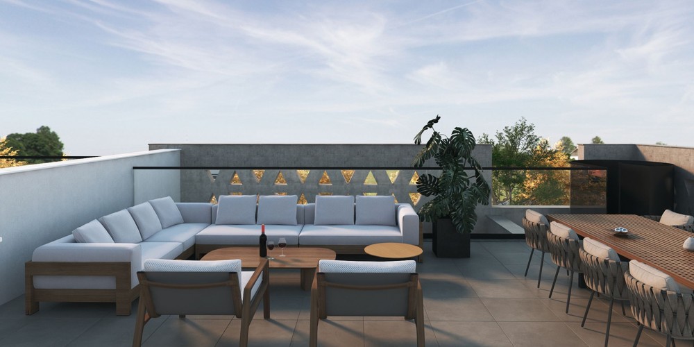 В составе открытой веранды сад на крыше 73 кв.м.
