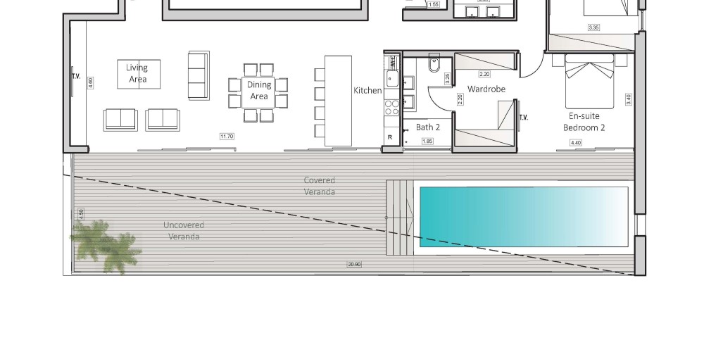 Проект будет иметь такие удобства, как роскошное лобби, огромный общий бассейн (квартиры на верхнем этаже будут пользоваться собственными бассейнами). Также будет открытая детская игровая площадка, тренажерный зал и площадка для падель-теннис...