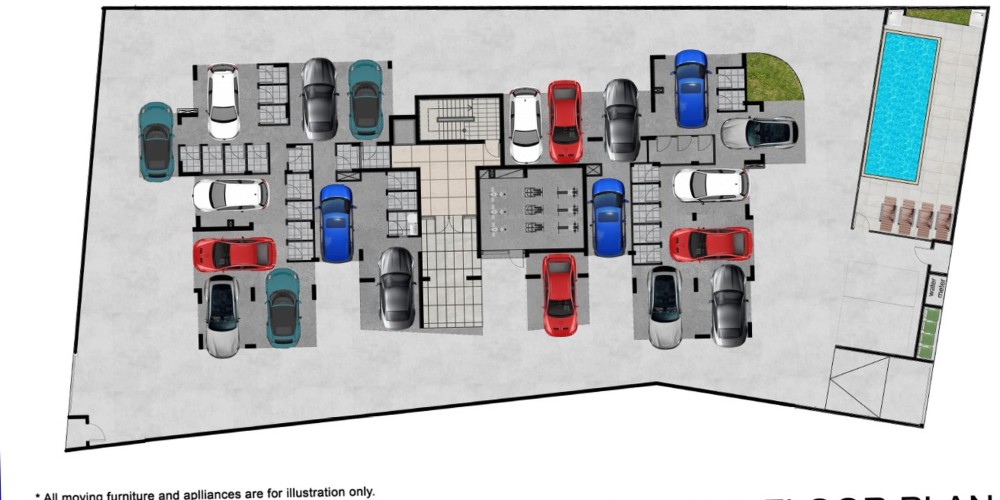 Каждой квартире будет выделено частное крытое парковочное место и кладовая.