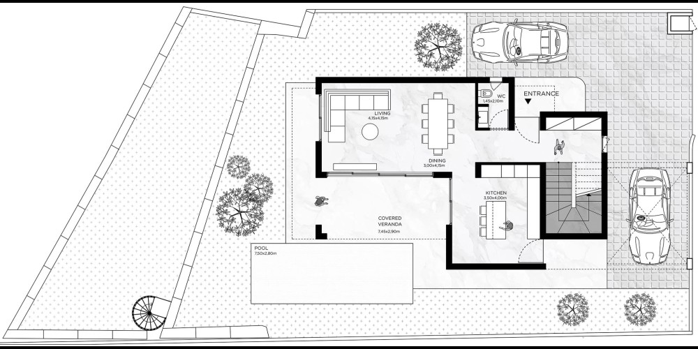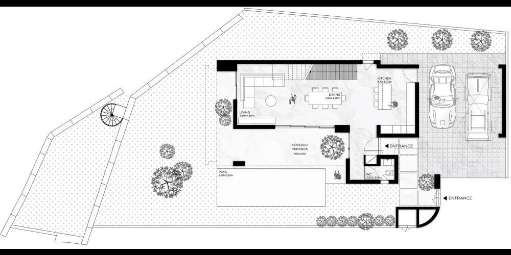 Общий дизайн основан на геометрическом подходе с простыми объемами, которые составляют приятные жилые пространства, как внутри, так и снаружи. Дома подчеркивают функциональность, а не излишние удобства.
