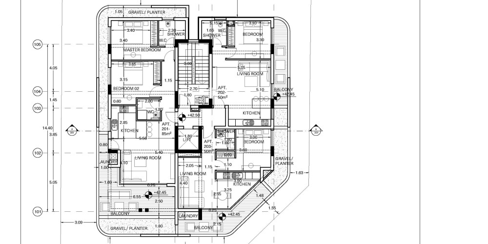 - 1 пентхаус с тремя спальнями (с собственным садом на крыше и бассейном).
