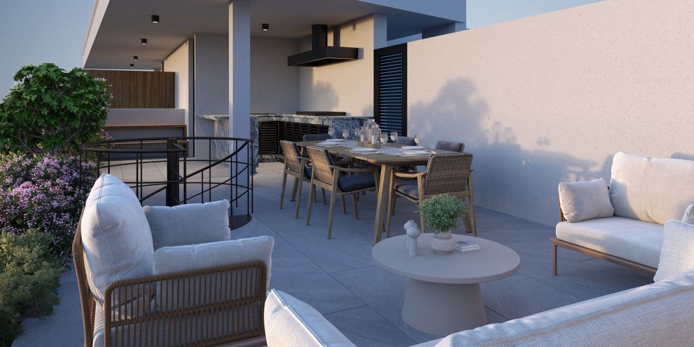 Этот проект расположен в районе Агиос Афанасиос и из квартир будут открываться прекрасные виды. Новый университет находится в пешей доступности, пляж Дасуди — всего в нескольких километрах от здания.