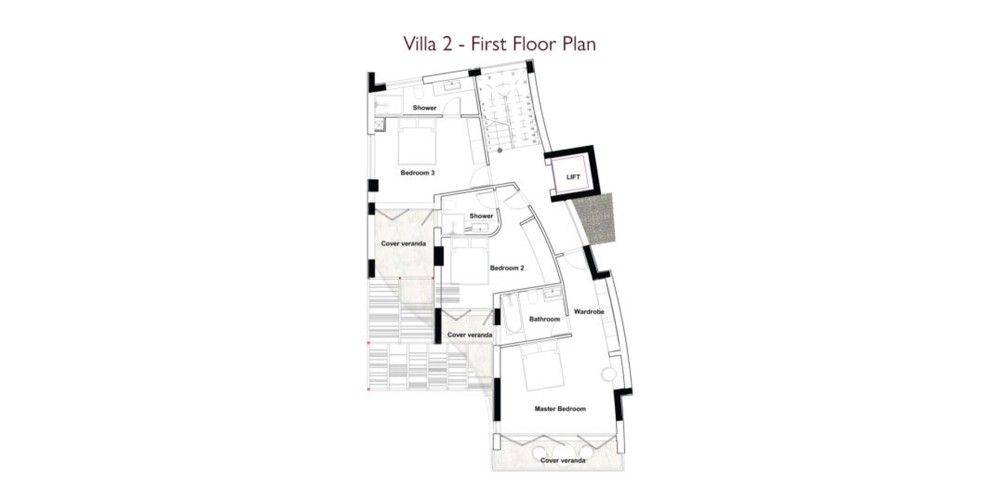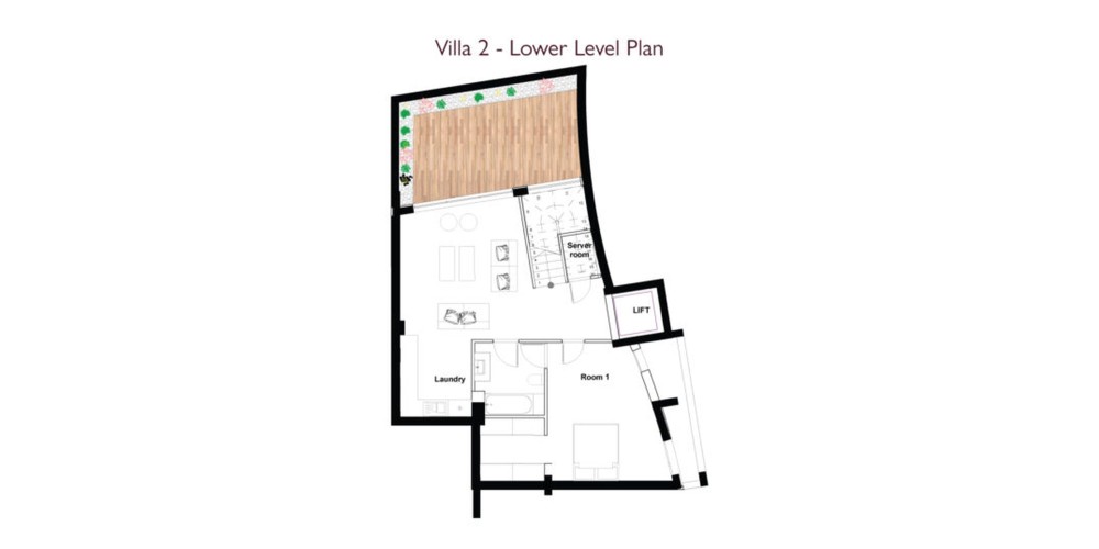 Лифт соединяет все этажи, обеспечивая доступность для всех. Каждая вилла также предлагает парковочное место на две машины.
