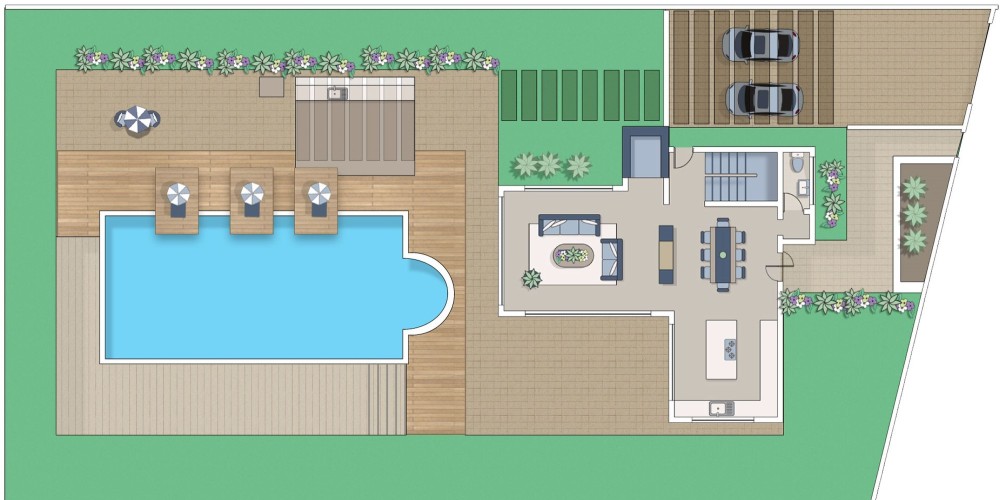 Виллы были созданы, чтобы удовлетворить потребность требовательного покупателя в роскоши и оригинальности, и укоренены в современной архитектуре высокого класса. Каменные элементы и отделочные штрихи HPL сочетаются с природным окружением, а огромные стеклянные части французских окон пропускают много света. Большие участки имеют большие сады и частный бассейн.