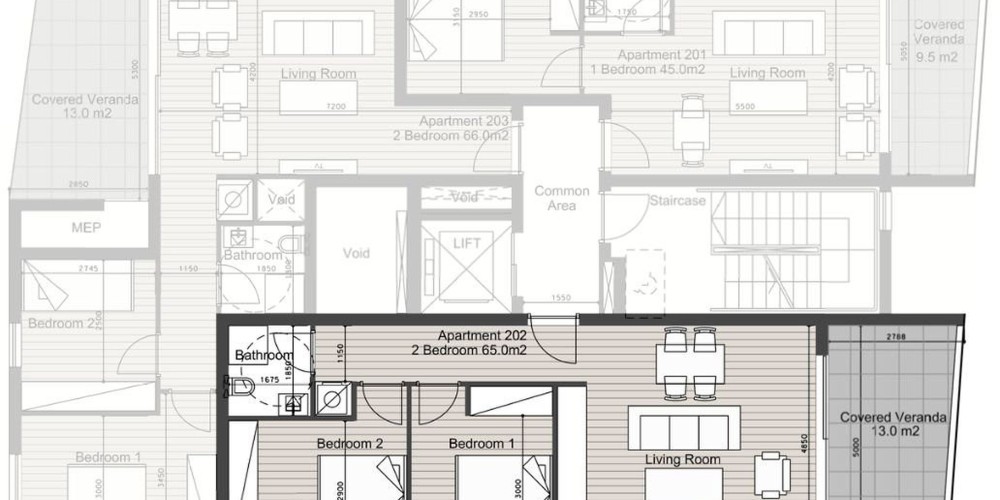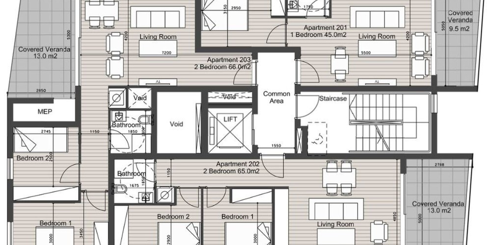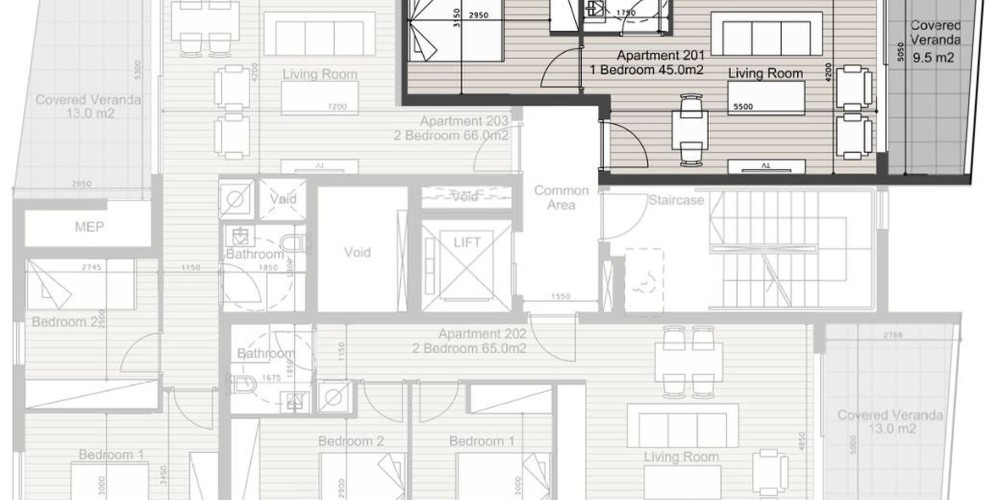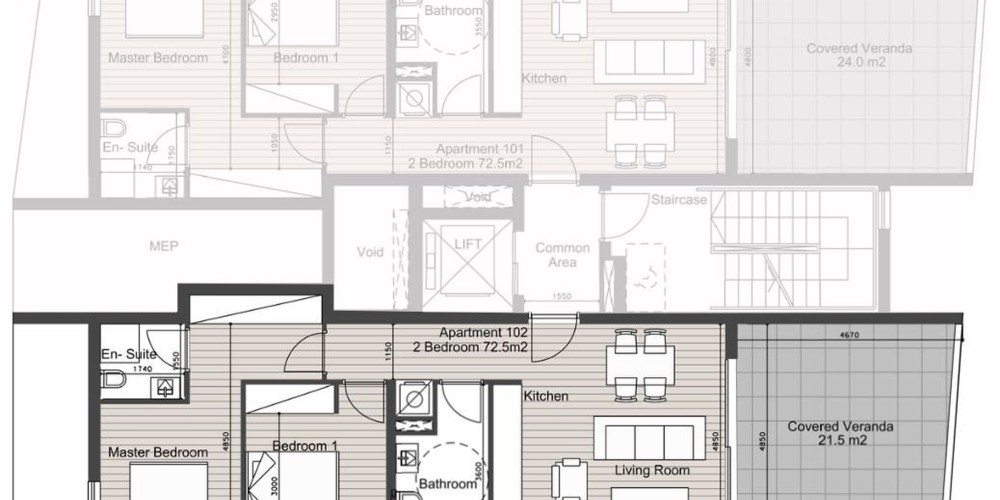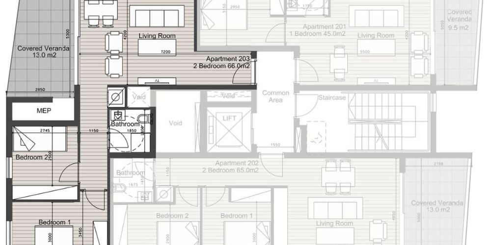 В здании есть выбор квартир и два пентхауса с 3 спальнями (один с бассейном), каждая с выделенным парковочным местом. Здание обеспечивает безопасность с помощью главного входа с камерой.