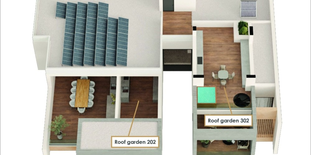 В составе открытой веранды сад на крыше 52 кв.м.