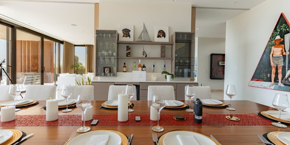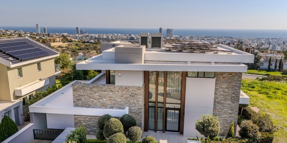 Роскошная современная вилла (построена 2022г.) с высочайшими стандартами технологий и материалов. Эта очень просторная вилла с 6 спальнями и офисом с панорамным видом на побережье и город расположена в районе Паниотис, Гермасойя, всего в 8 минутах езды от пляжа и центра города Лимассол.