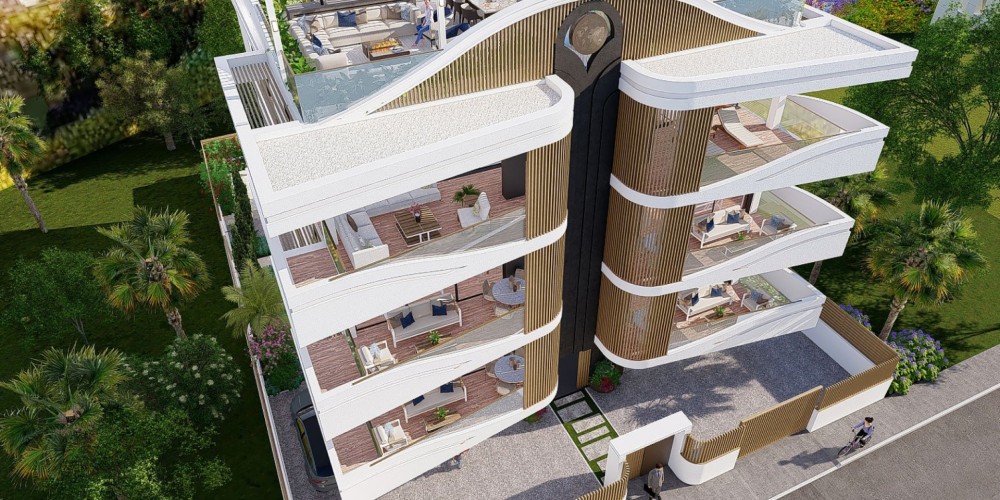 Это оригинальное по дизайну здание расположено в одном из самых развитых районов Лимассола, всего в 500 метрах от знаменитого пляжа Дасуди и эвкалиптовой рощи. Концепция дизайна проекта основана на сочетании белых и золотистых оттенков, что придает зданию уникальный внешний вид и отличительные черты.