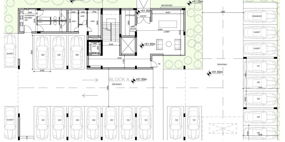 Частная парковка и кладовые будут расположены на цокольном этаже (-1).