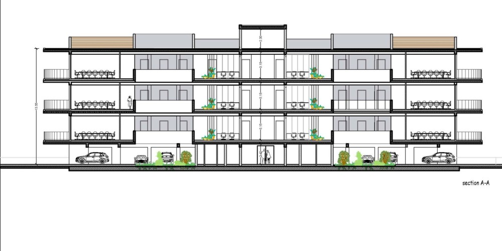 Половина каждого этажа занимает офисные помещения с крытой верандой, а также п...