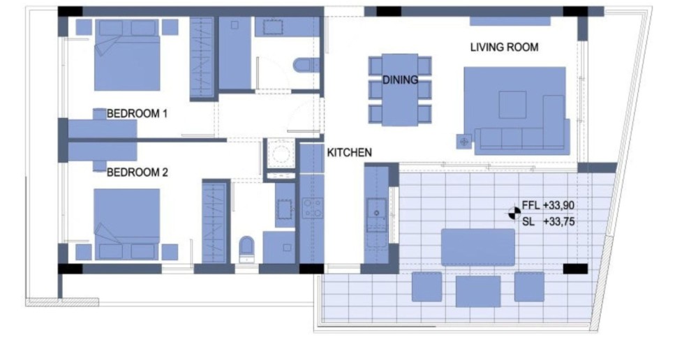 - Открытая планировка: гостиная и столовая
