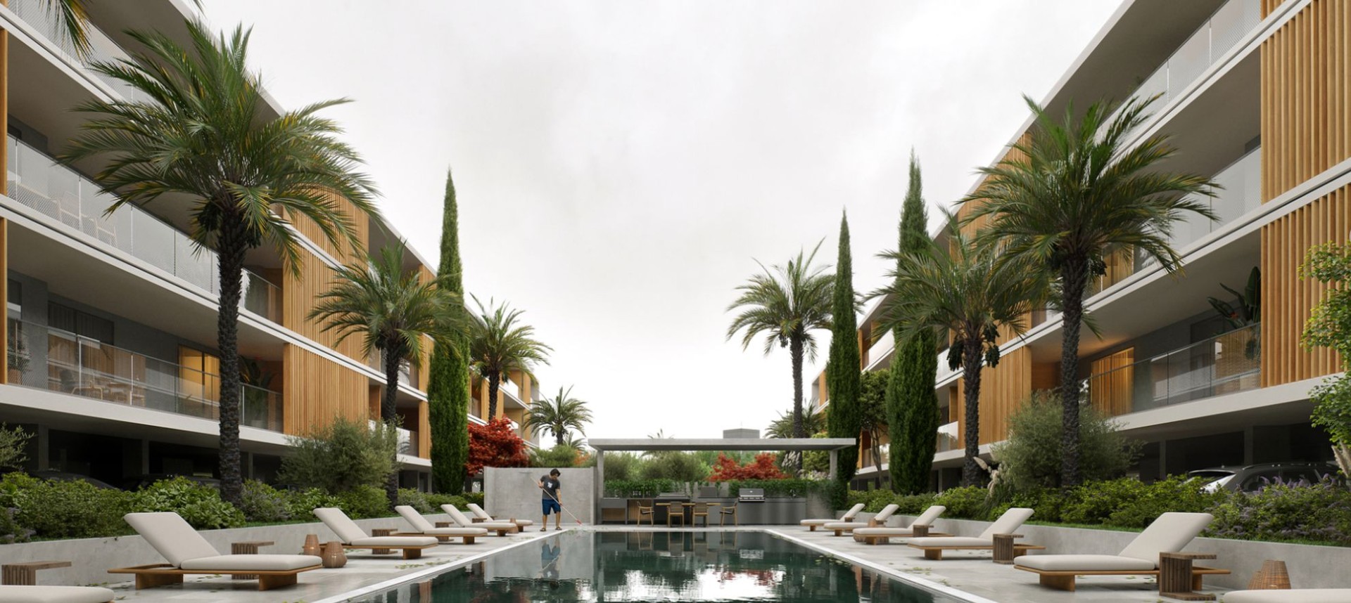 - Внутренняя инфраструктура курортного типа с бассейнами, спа-салоном, тренажерным залом, залом для йоги и теннисным кортом