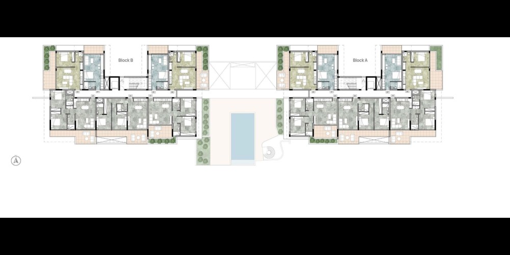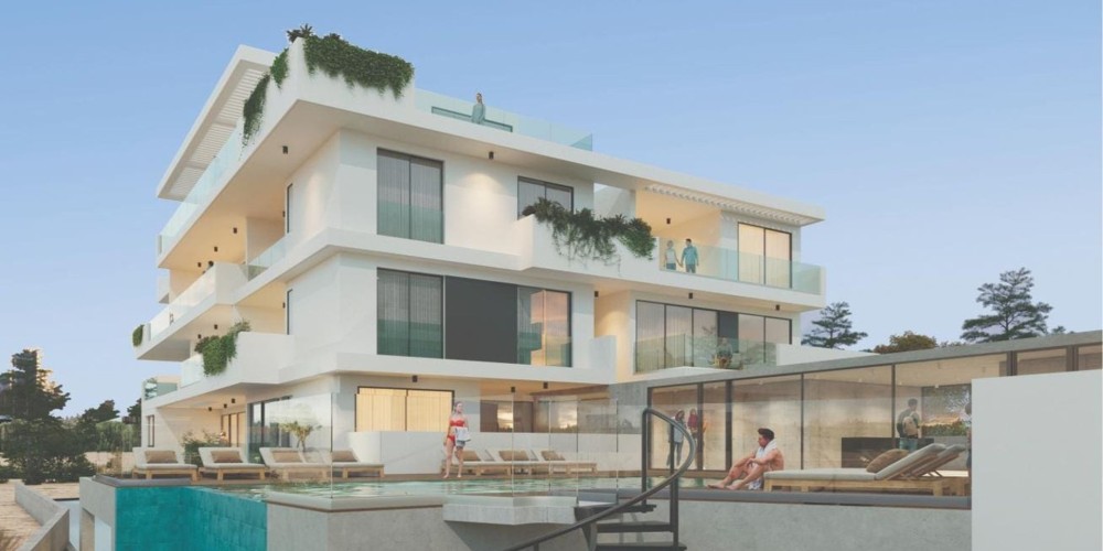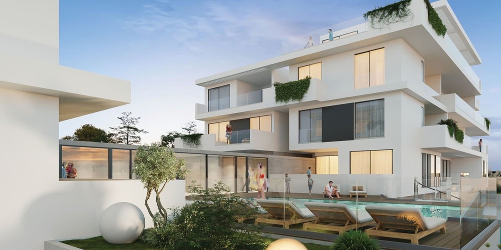 Это жилое здание предлагает студии, квартиры с 1 и 2 спальнями, включая коттеджи с просторными собственными садами и пентхаусы с панорамным видом на море.