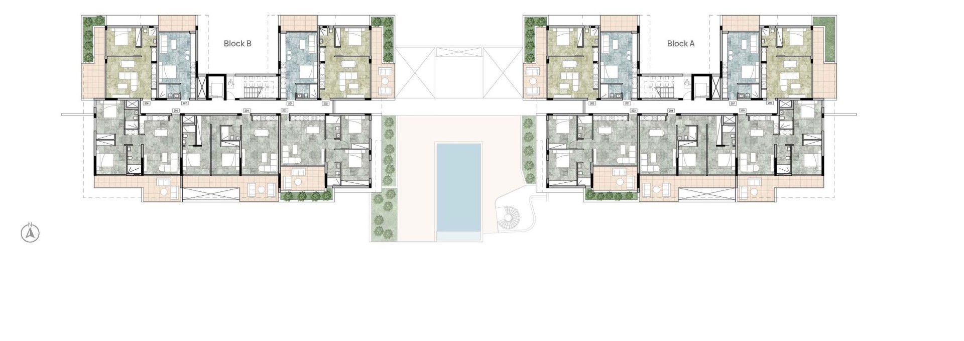 В комплексе предусмотрены комфортабельные удобства курортного комплекса: лобби, консьерж, тренажерный зал, большой бассейн и ландшафтные сады...