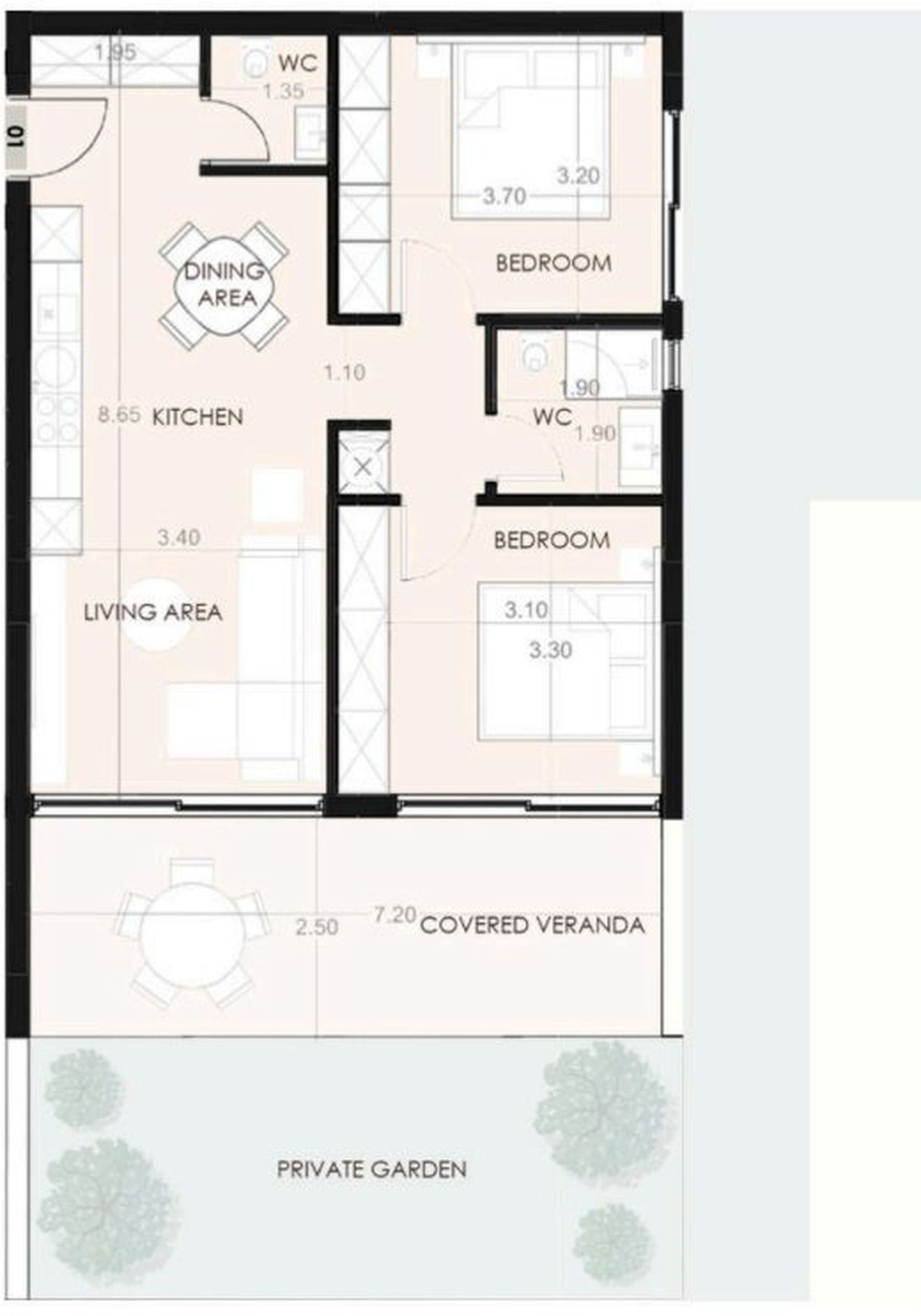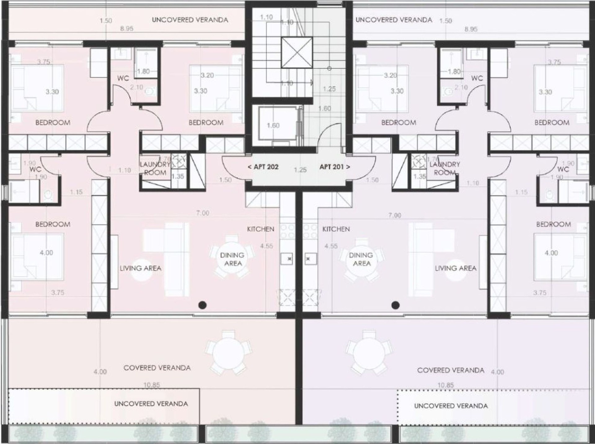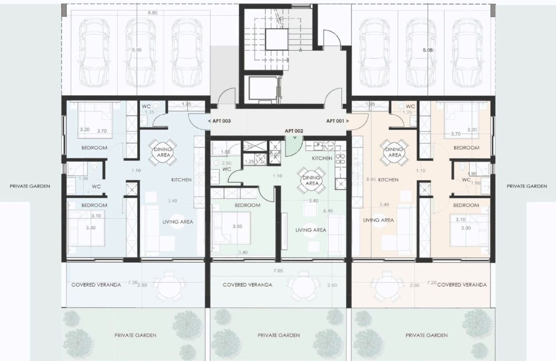 Квартиры на нижнем этаже имеют собственные сады, а общий бассейн и зона отдыха позволяют соседям встречаться и проводить время вместе.