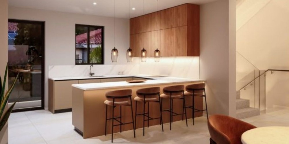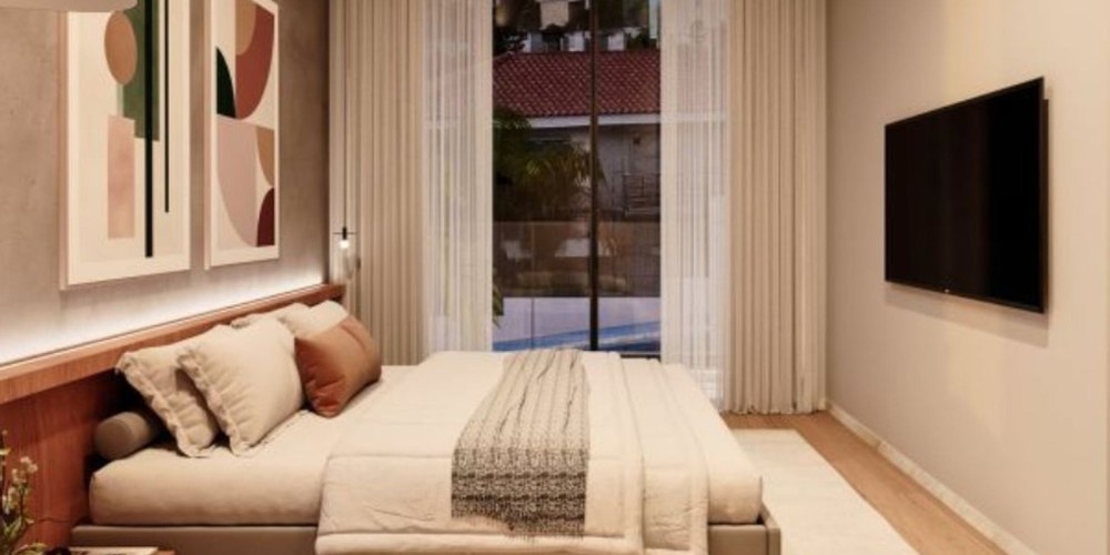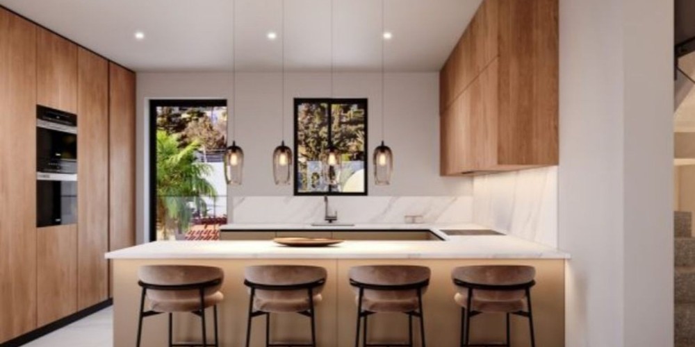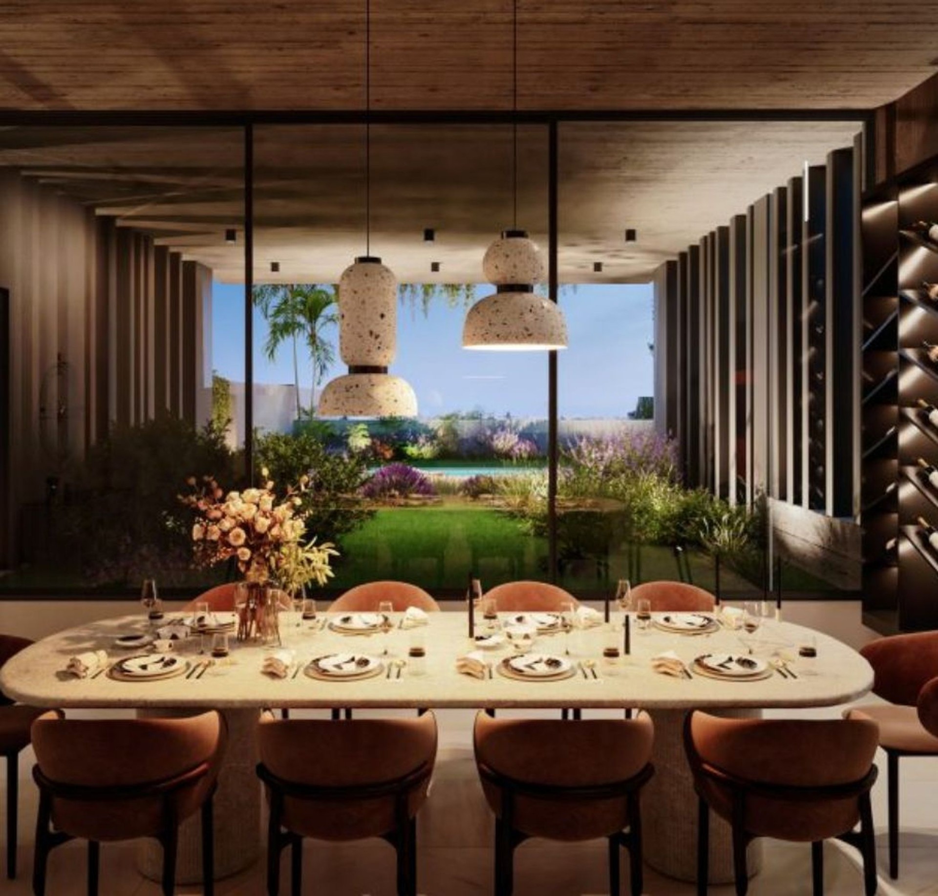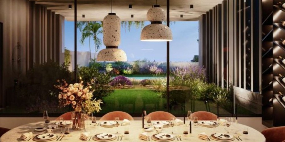 Виллы предлагают сад с бассейном, сад на крыше, четыре спальни с ванными комнатами и крытую парковку.