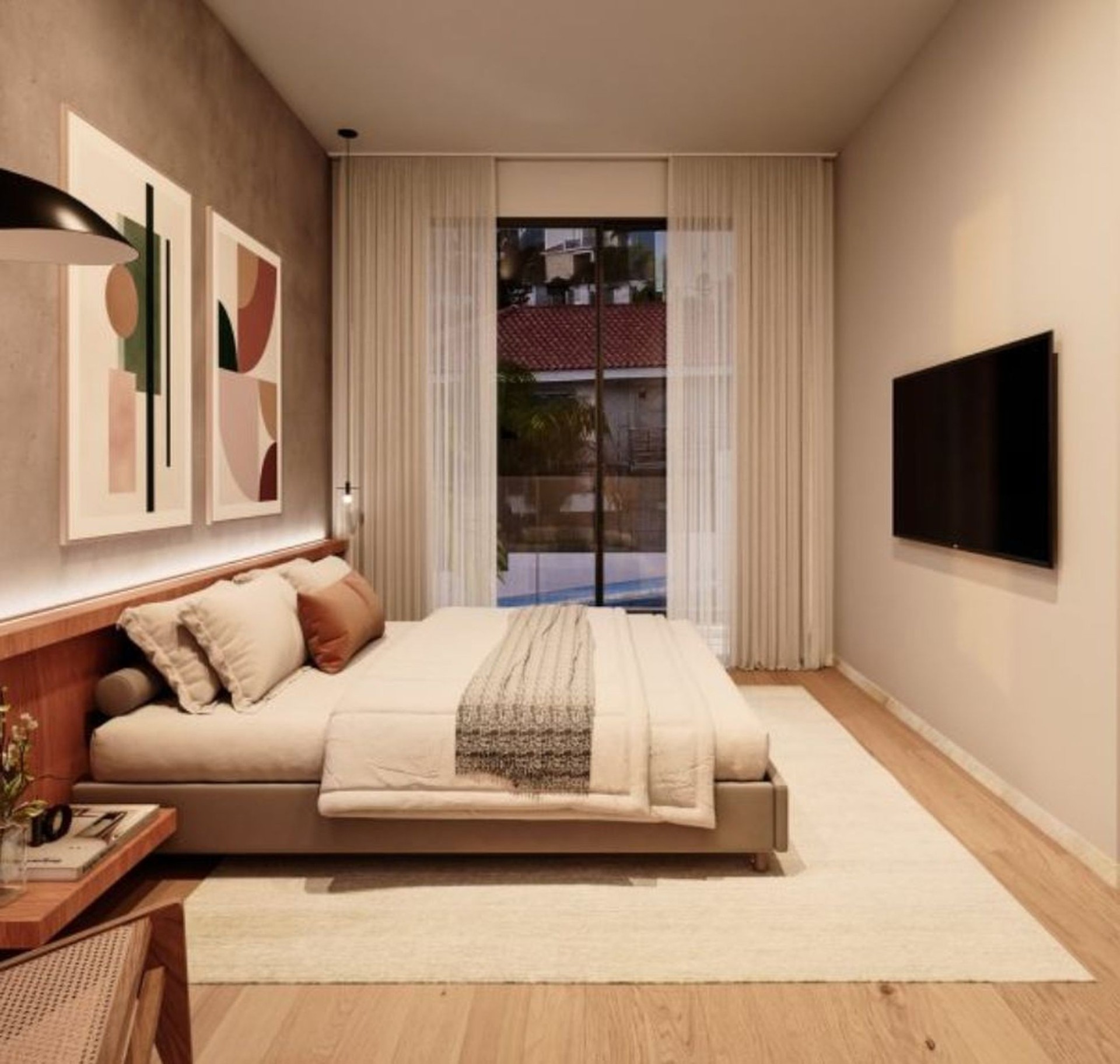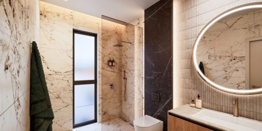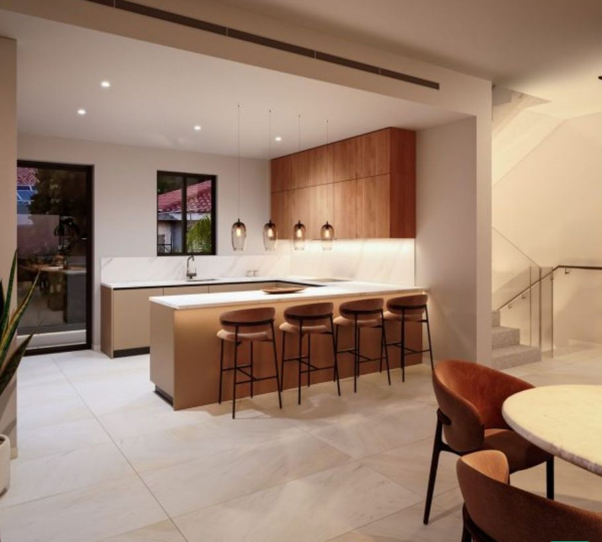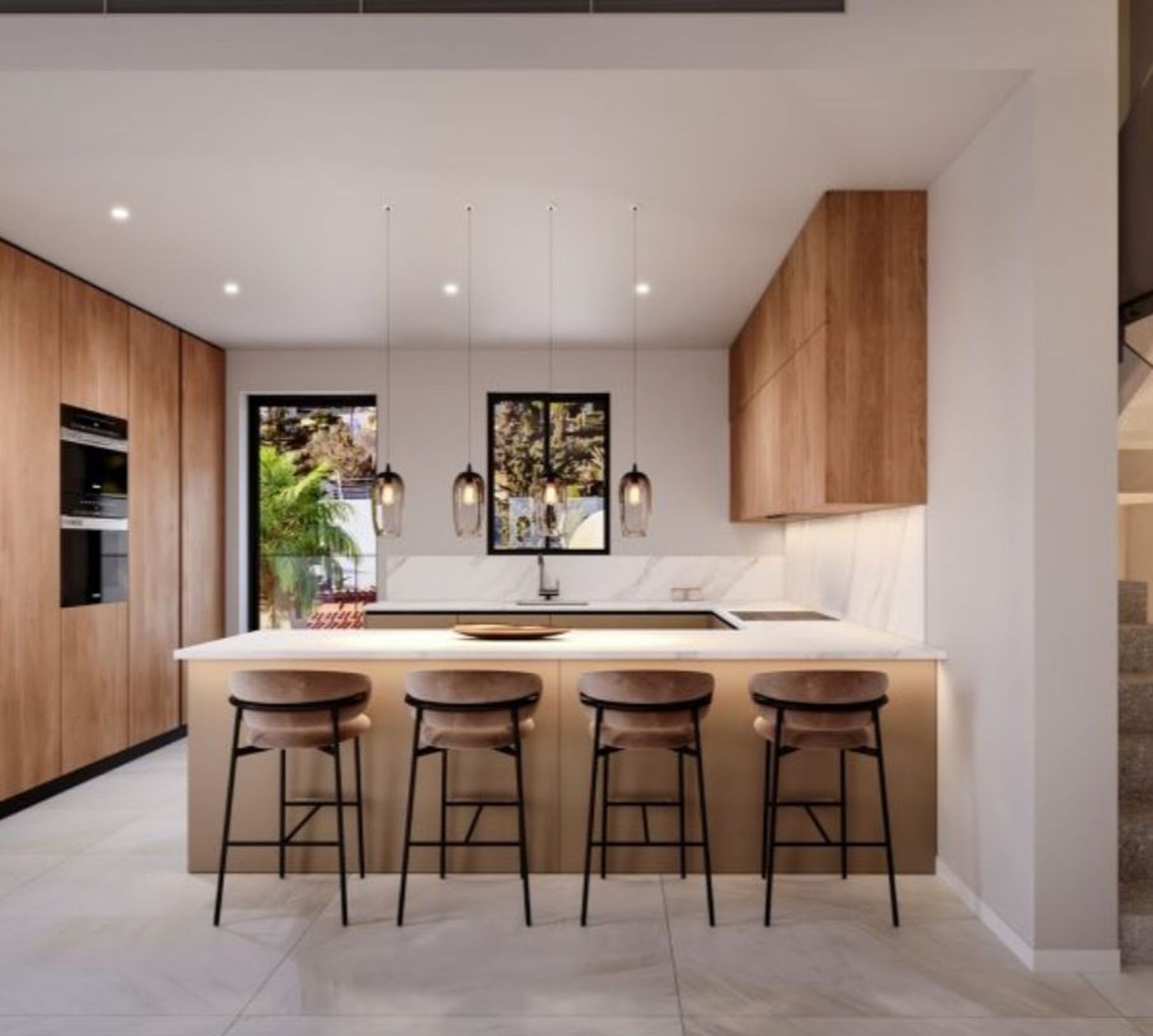 Виллы предлагают сад с бассейном, сад на крыше, четыре спальни с ванными комнатами и крытую парковку.