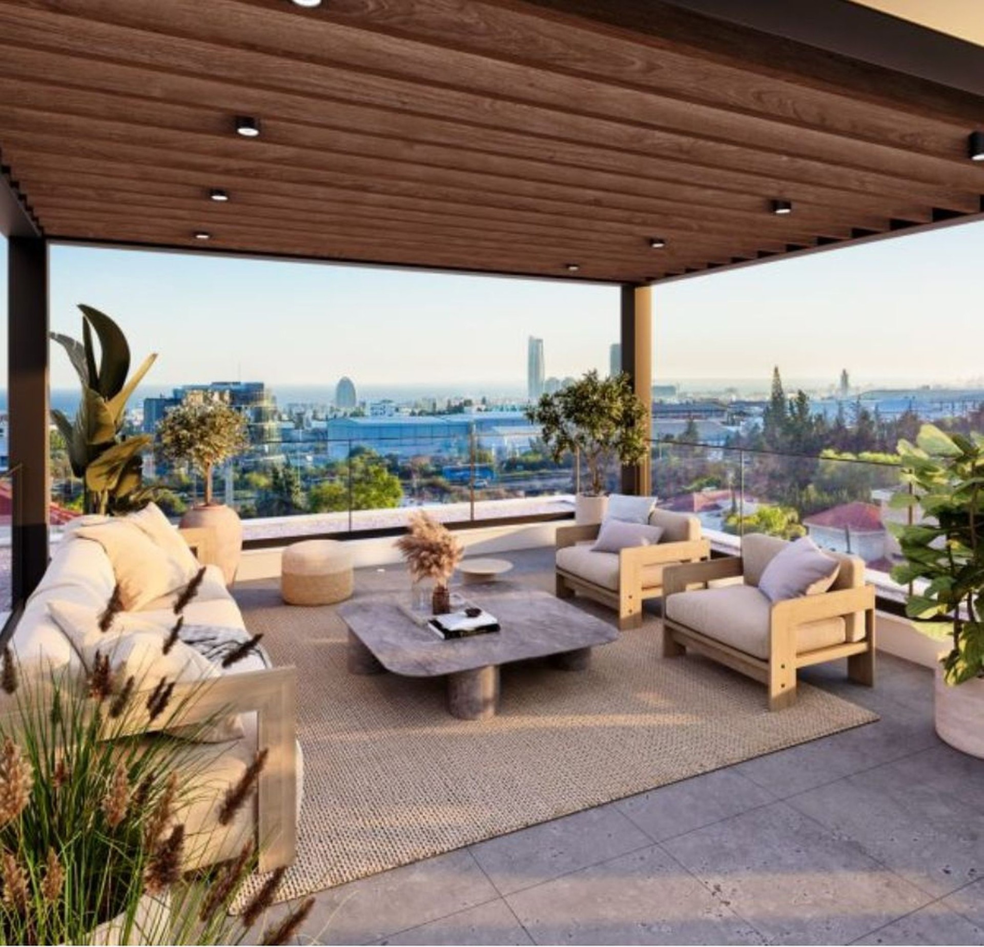 T059 - Виллы с 4 спальнями, садом/бассейном и террасой на крыше с беспрепятственным видом на город и море в Лимассоле