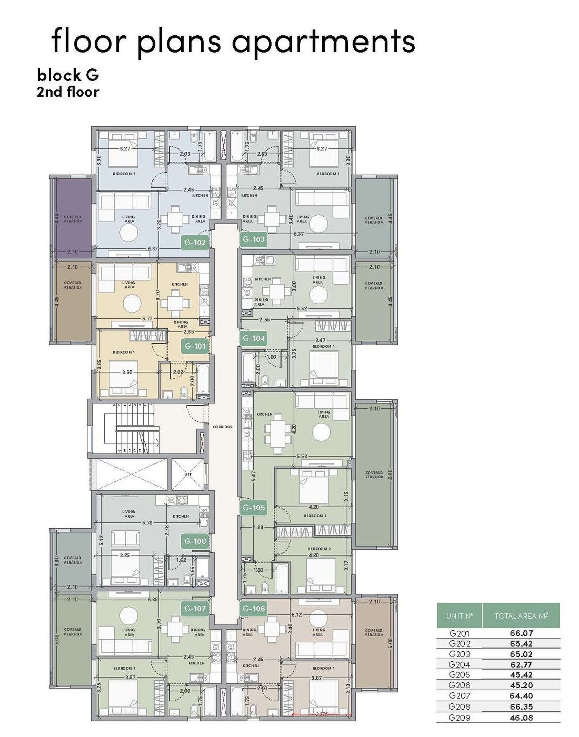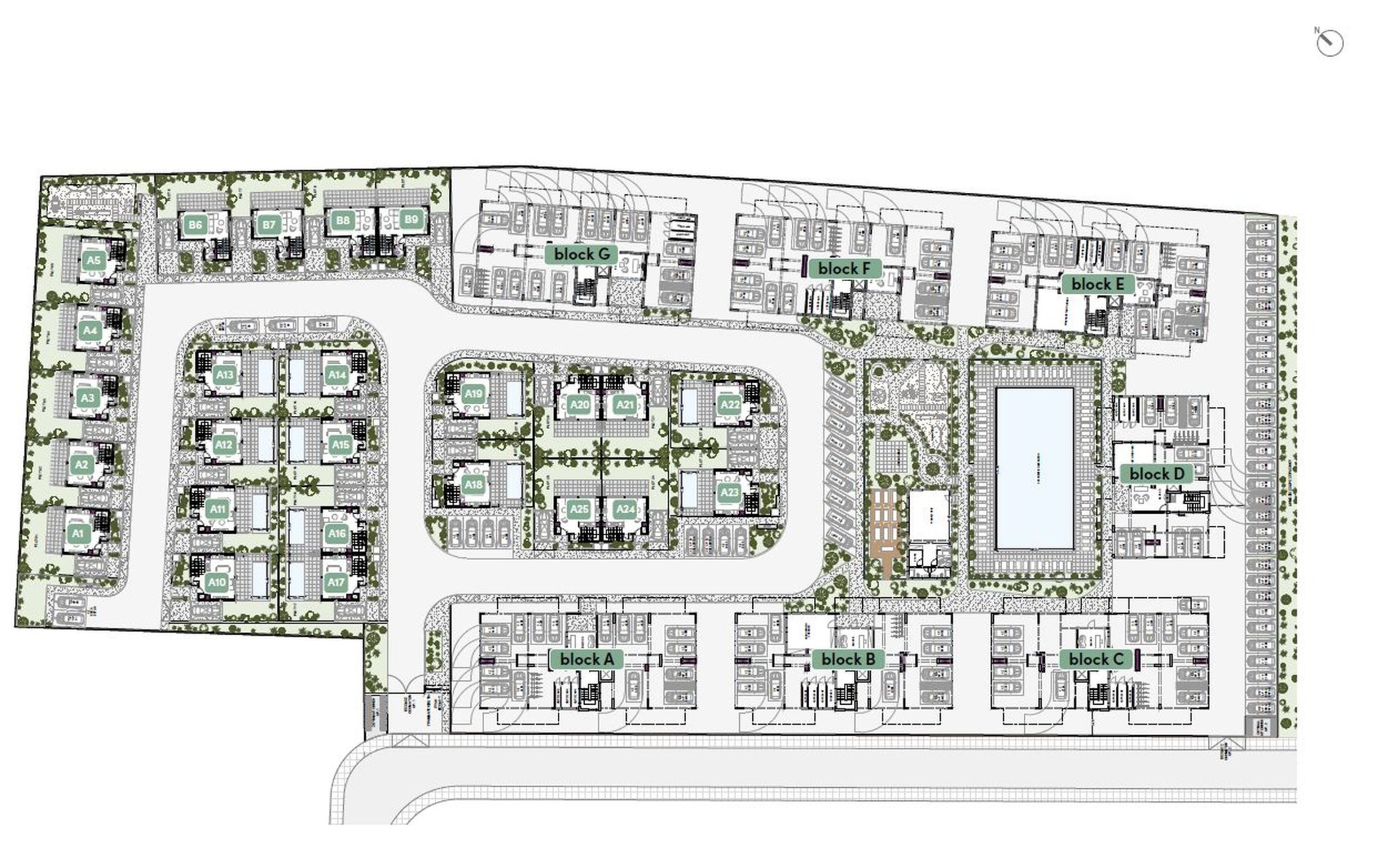 Проект включает в себя как частные виллы, так и жилые блоки. Жители могут пользоваться благоустроенными общими пространствами, детскими площадками, оздоровительными и фитнес-центрами, а также охраняемой территорией.