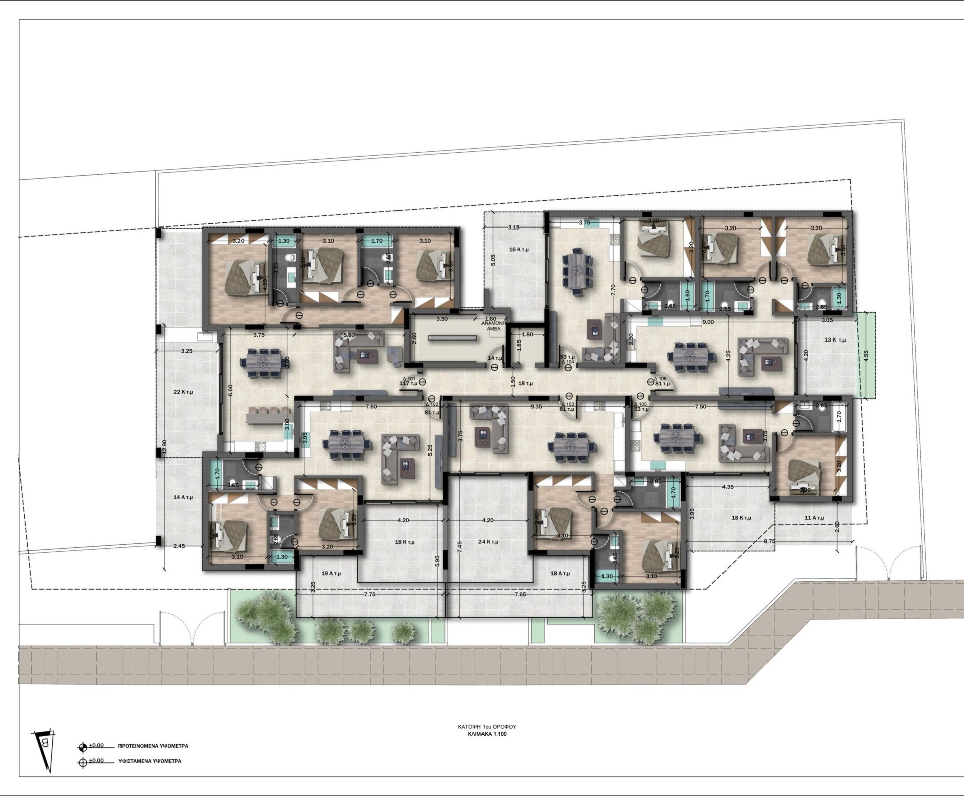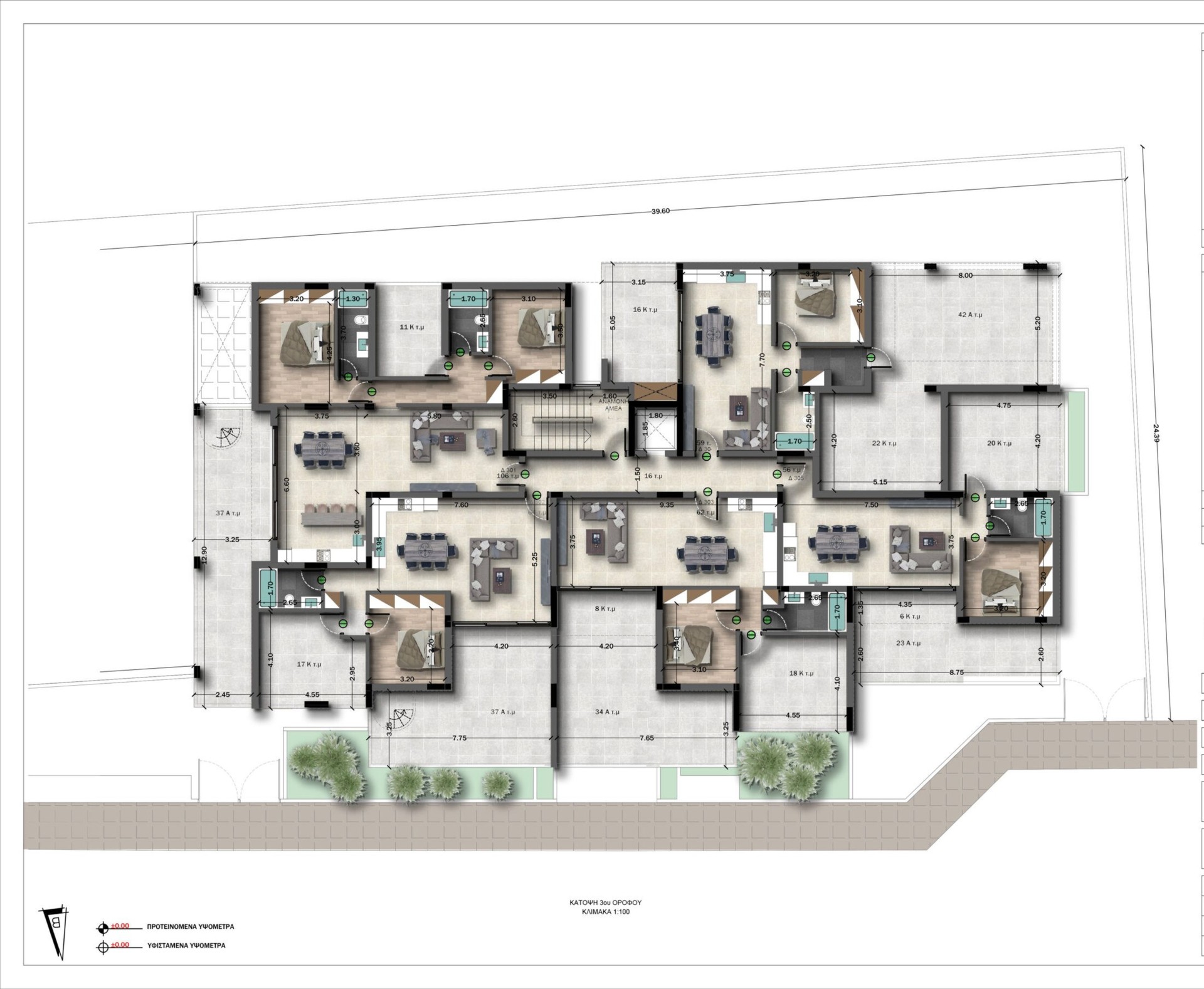В здании предлагаются квартиры с 1, 2 и 3 спальнями, все с выделенными кладовыми.
