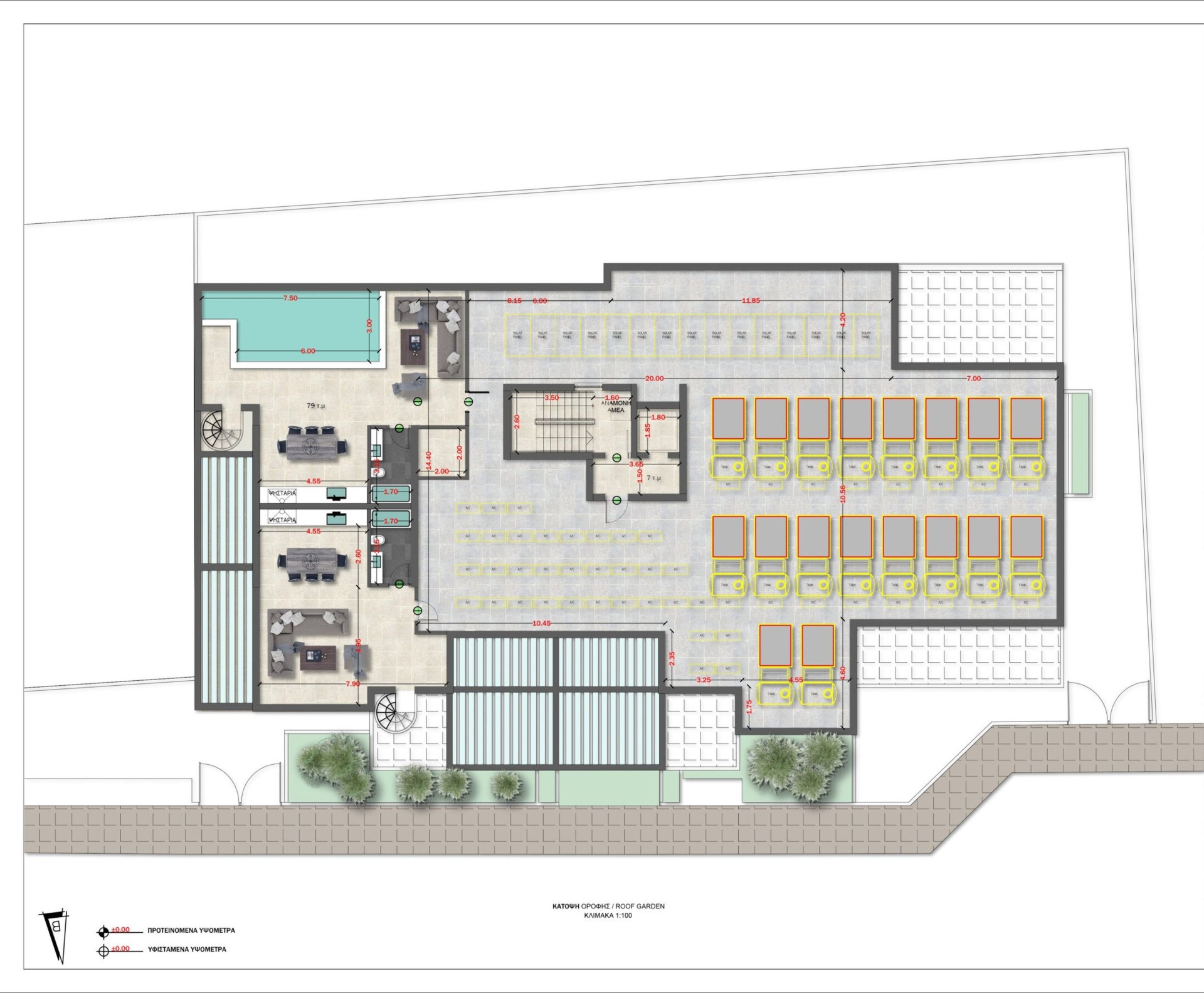 В составе отркытой веранды сад на крыше 79 кв.м.