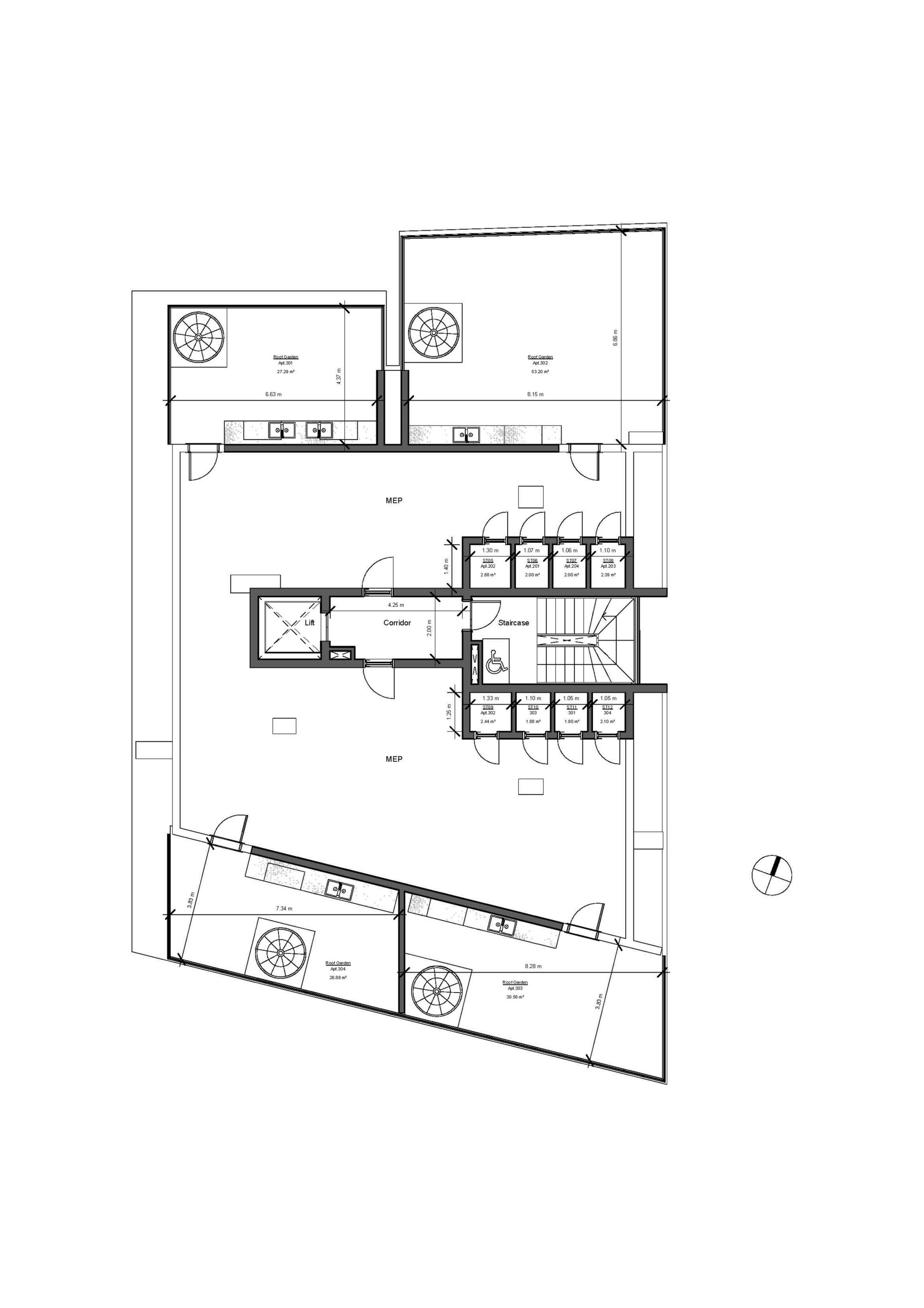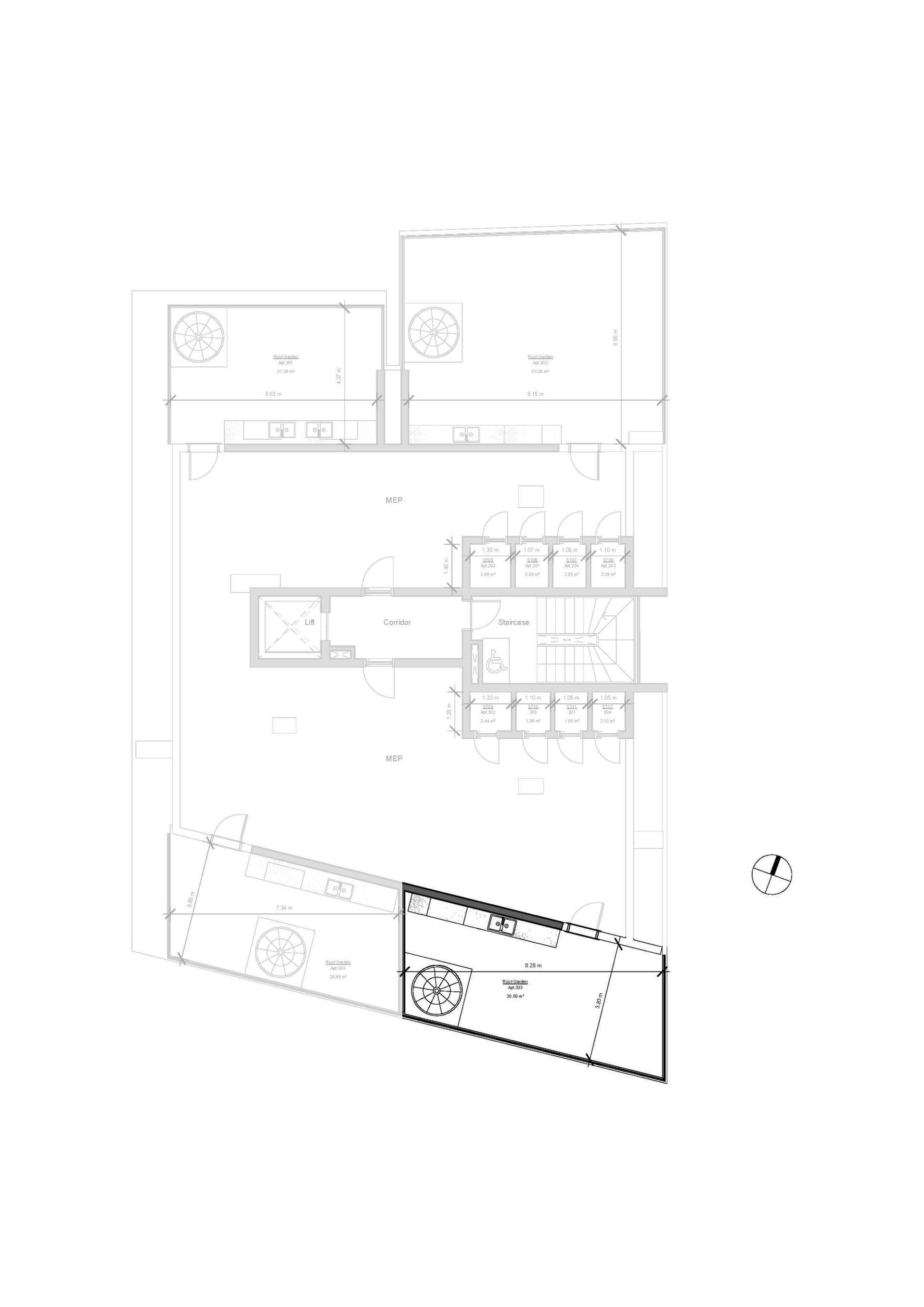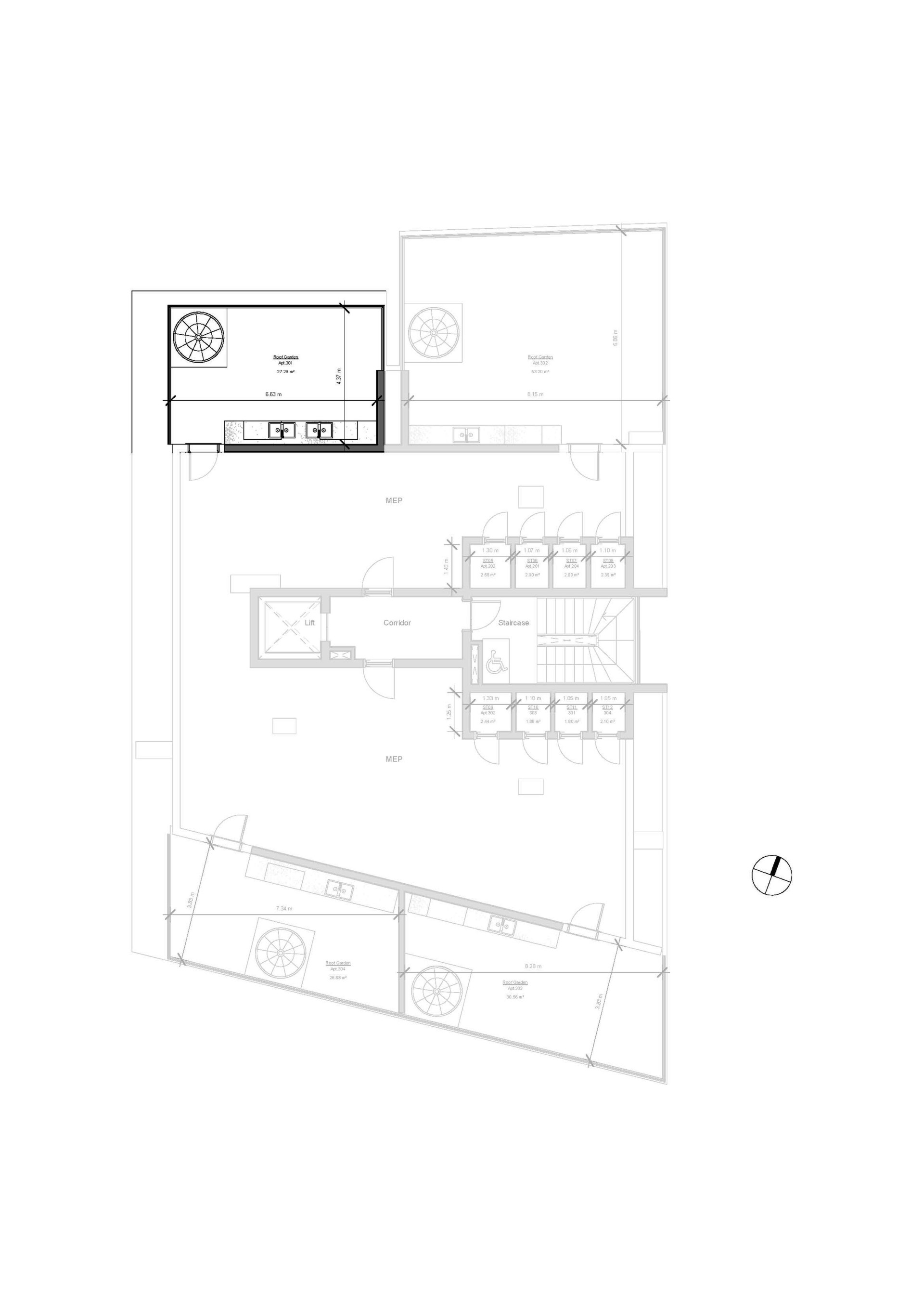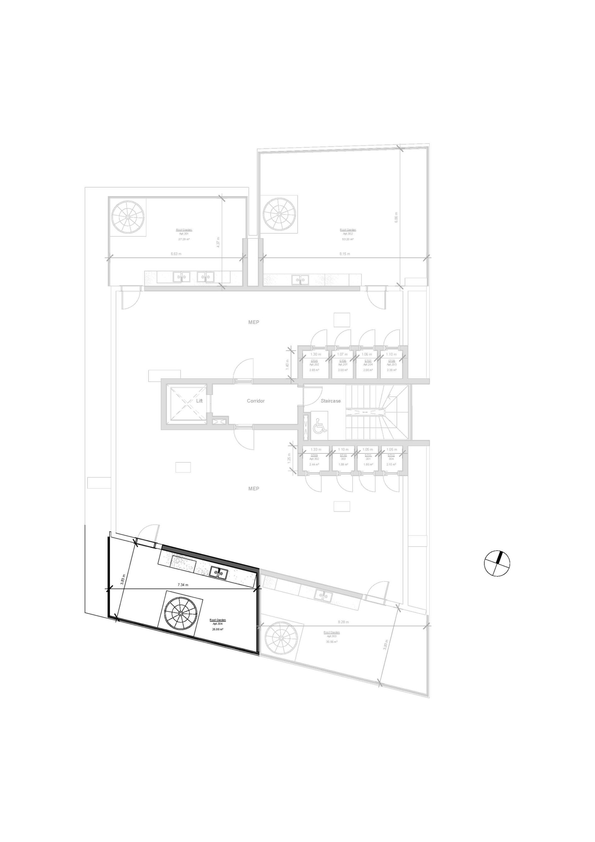В составе открытой веранды сад на крыше 53 кв.м.