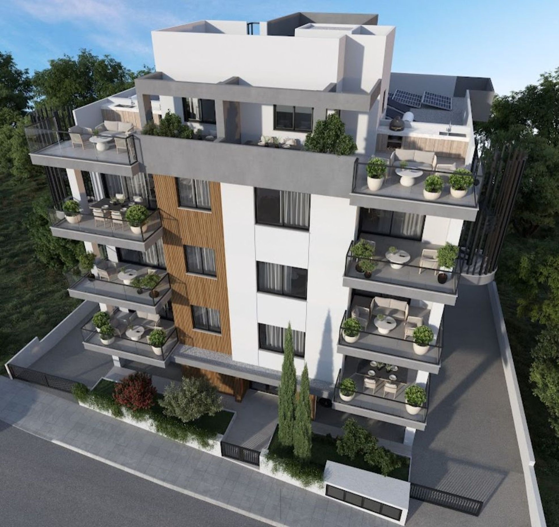 Это жилое здание из двухкомнатных квартир расположено в районе Экали, Лимассол. Проект состоит из 6 квартир, все с крытыми верандами.