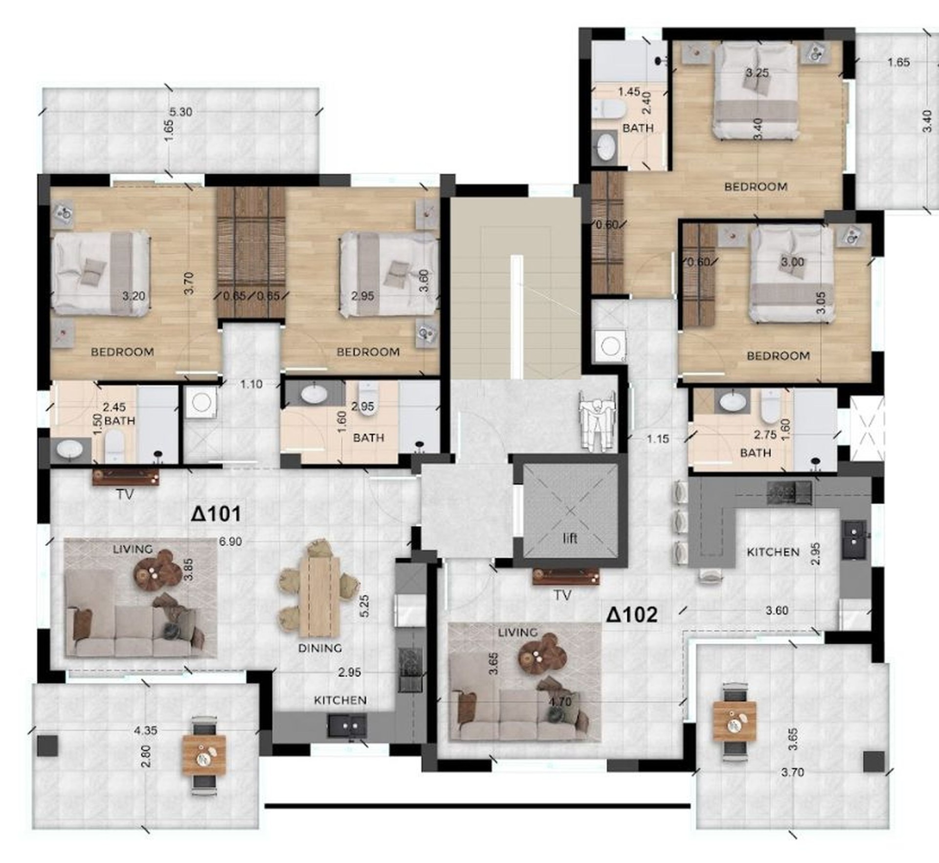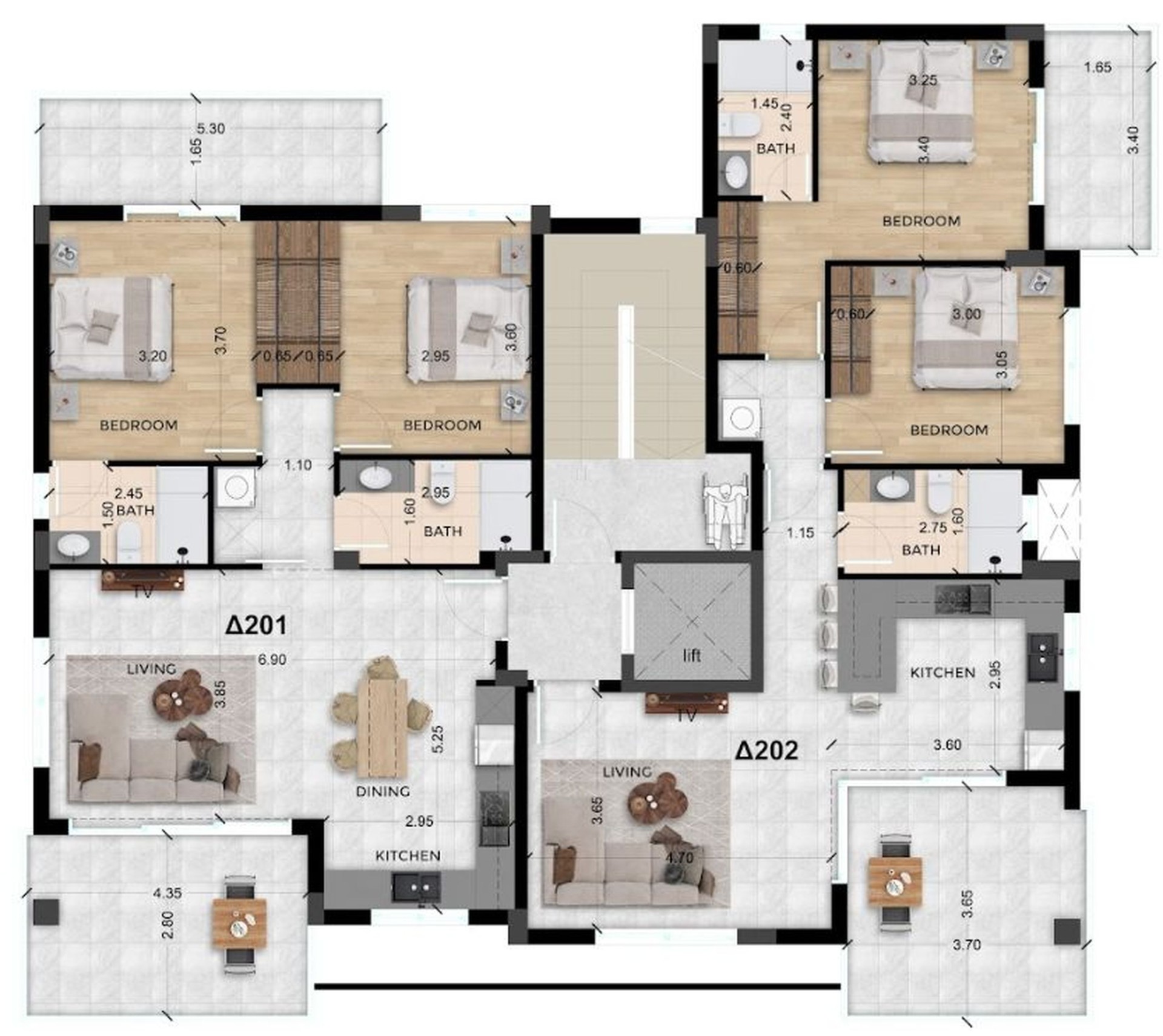 Квартиры на верхнем этаже также будут иметь собственные просторные открытые веранды.