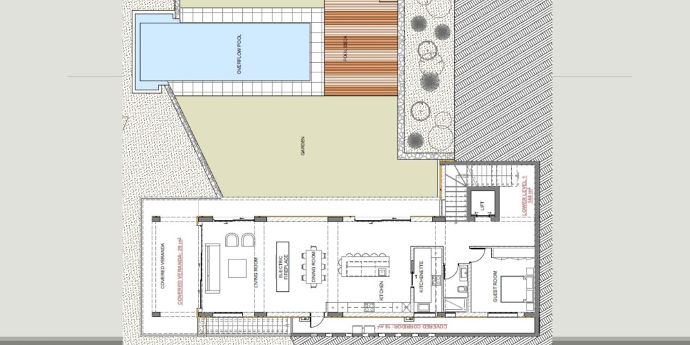 Она расположена на просторном участке, предлагает парковочное место на 2 автомобиля, а также частный бассейн.