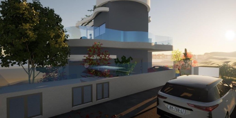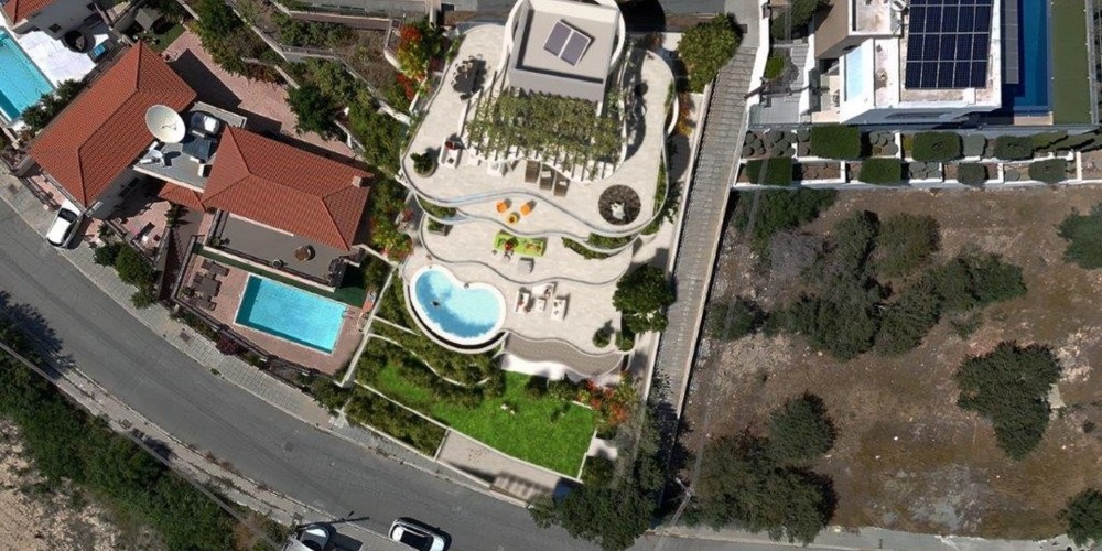 Вилла расположена в панорамной точке района Агиос Афанасиос, над городской частью Лимассола, в окружении новых масштабных элитных застроек.