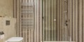 Мезонет занимает три уровня. На первом этаже расположена гостиная открытой планировки, переходящая в крытую веранду. Второй этаж включает три спальни, каждая из которых оборудована собственной ванной комнатой и гардеробной, а также четвертую комнату свободного назначения. На цокольном этаже с отдельным входом обустроены частный спортзал с тренажерами Technogym, кинотеатр, сауна, хаммам, винный погреб на 800 бутылок и бар.